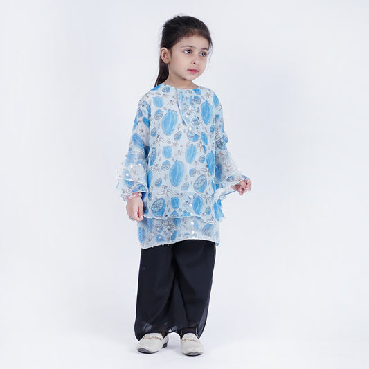 Girls Fancy Top with Flapper Sleeves with Black Pajama