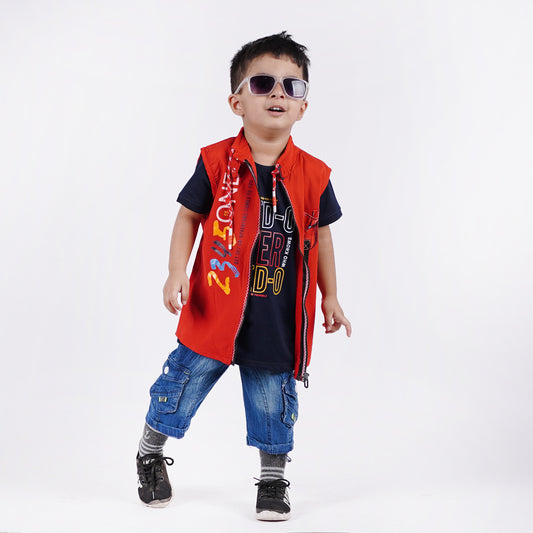 Boys 3pc T-Shirt with Sando Zipper & Short