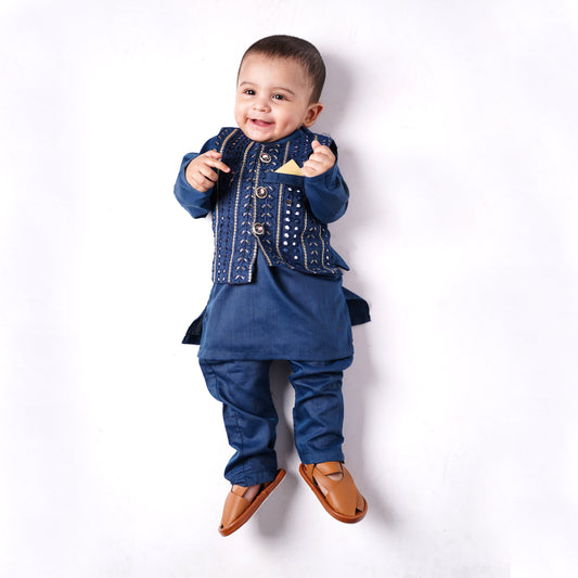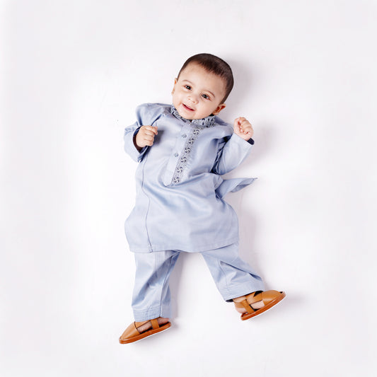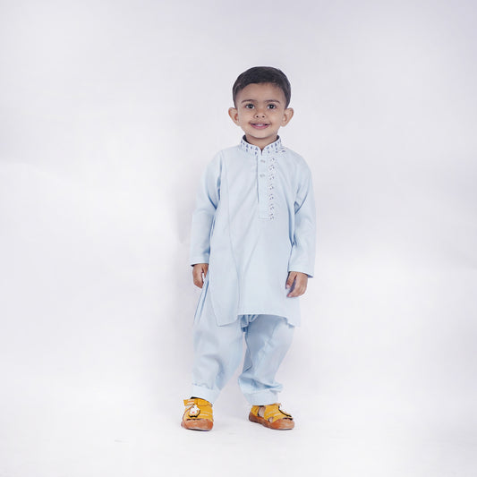 Boys Sky Blue Shalwar Kameez with Embroidery