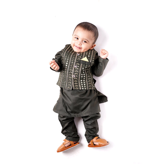 Boys Sea Grean Shalwar Kameez with Embroidery
