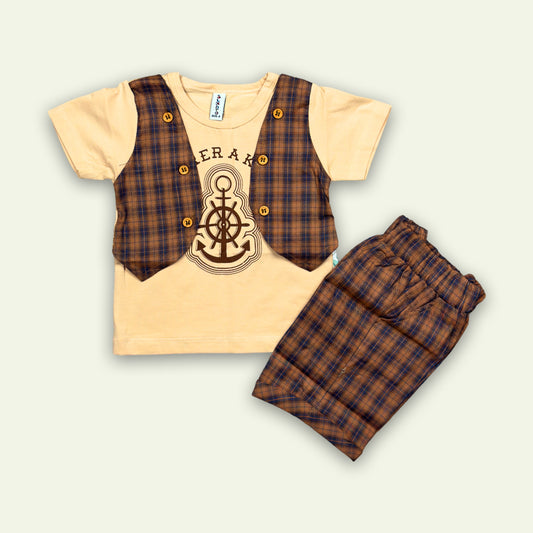 Boys Fancy Top with Shorts Yellow & Off White
