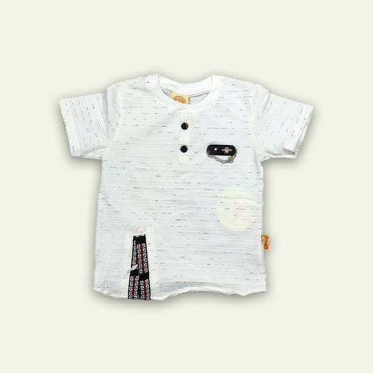 Boys Fancy White T-Shirt & Gray Shorts