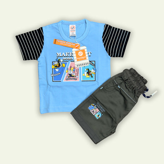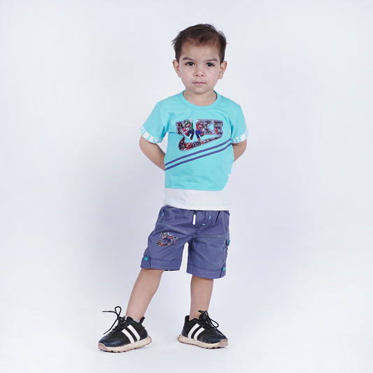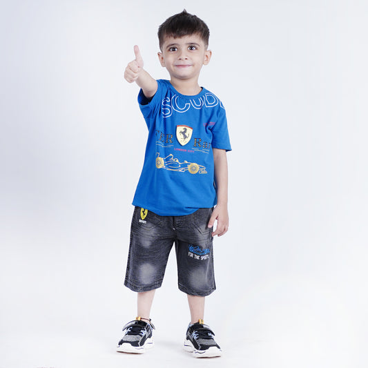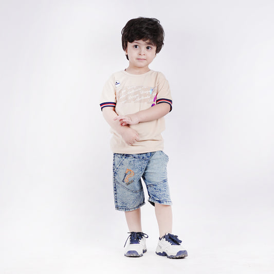 Boys Printed T-Shirt with Denim Embroided Short