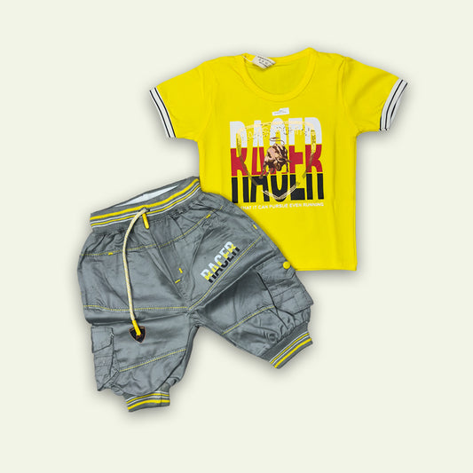 Boys Yellow Fancy Racer T-Shirt with Short