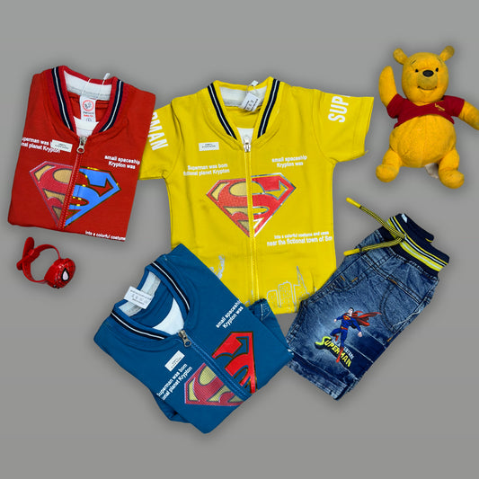 Boys Fancy Superman T-Shirt & Blue Denim Shorts