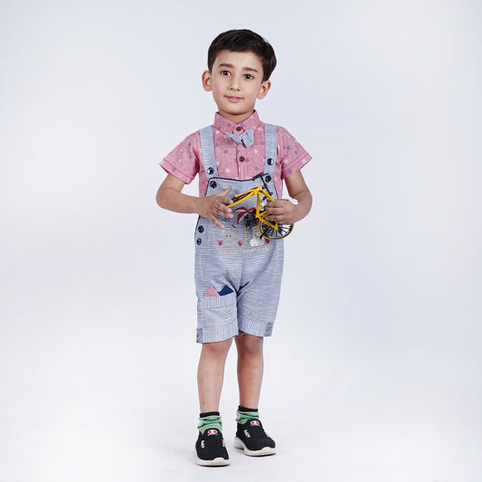 Boys Romper with Printed Shirt & Bow Tie