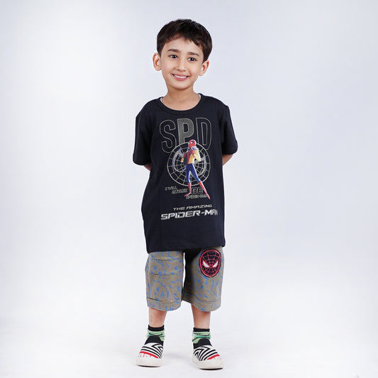 Boys Amazing Spiderman T-Shirt with Printed Short