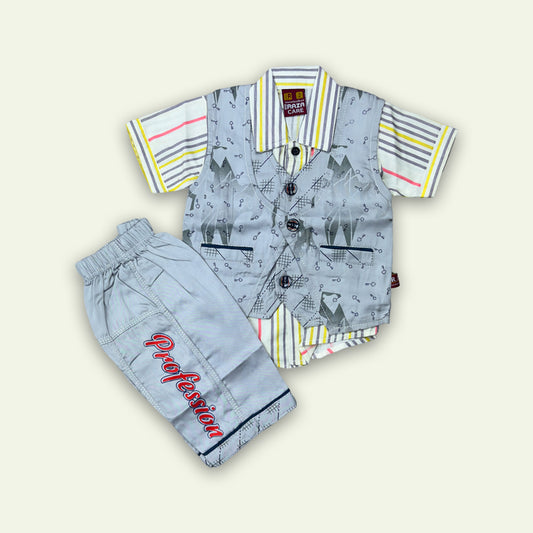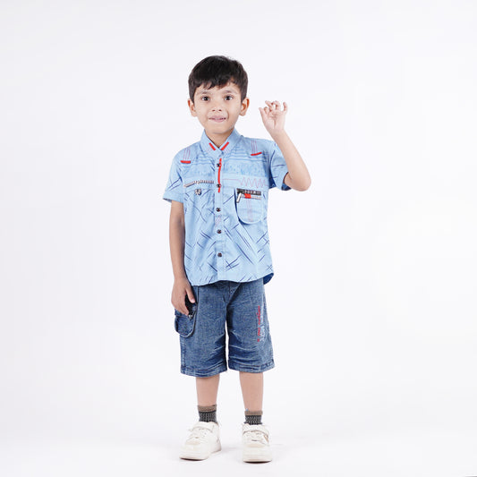 Boys Fancy 3pc Printed Shirt with baggie Short