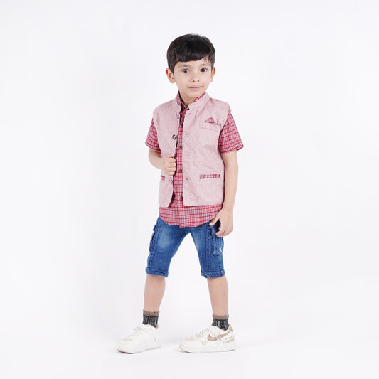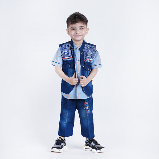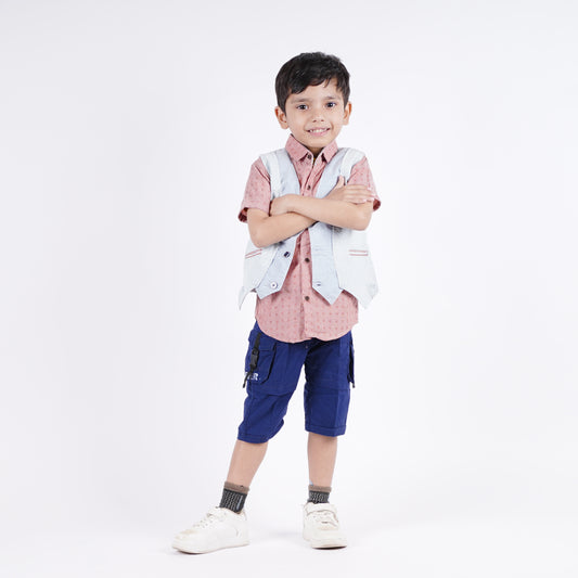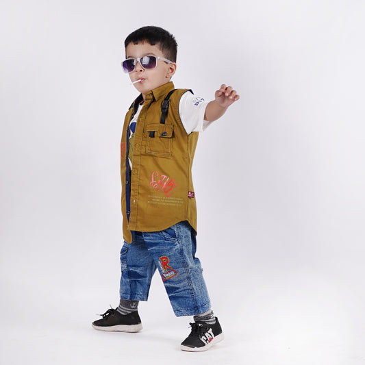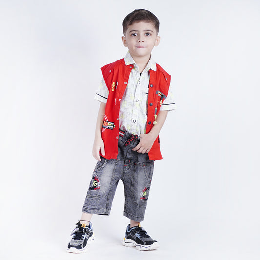 Boys Fancy 3pc Printed Shirt with Sando Top & Short