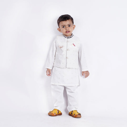 Boys White Shalwar Kameez with Waist Coat