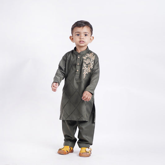 Boys Green Shalwar Kameez with Embroidery