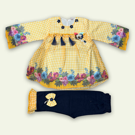 Girls Fancy Floral Top with Designed Flower Bunch Pajama
