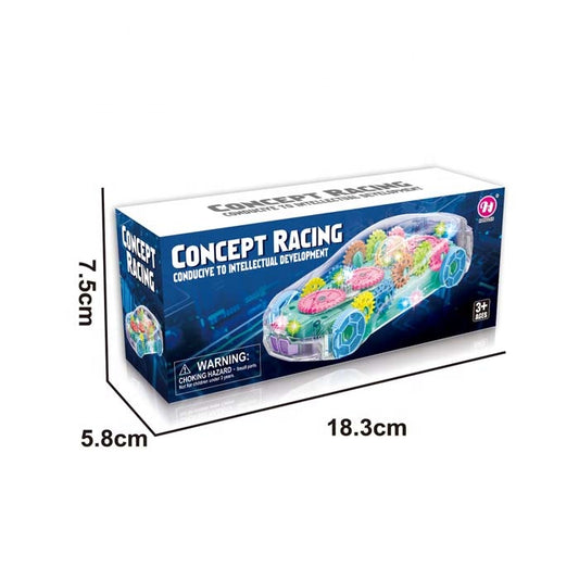 Engineering Transparent Car Toy Electric Gear Racing Car with Dynamic Music and Cool Light for Kids